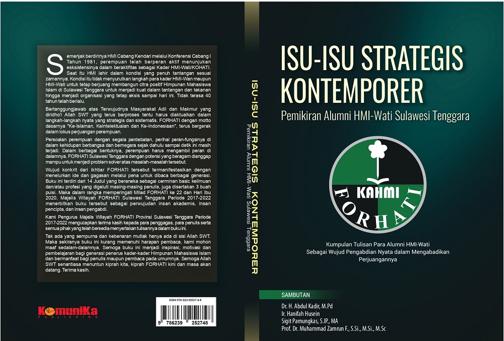 Setelah bekerja keras MW FORHATI Provinsi Sulawesi Tenggara Periode 2017-2022 dapat mempersembahkan buku kehadapan pembaca yang bertajuk “Isu-isu Strategis Kontemporer : Pemikiran Alumni HMI-Wati Sulawesi Tenggara”. Buku ini berisi kumpulan tulisan para alumi HMI-Wati sebagai wujud pengabdian nyata dalam mengabadikan perjuangannya.
